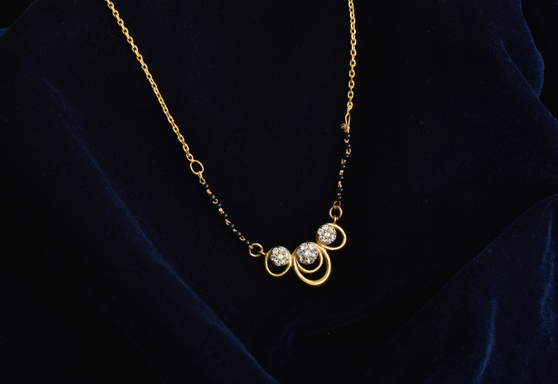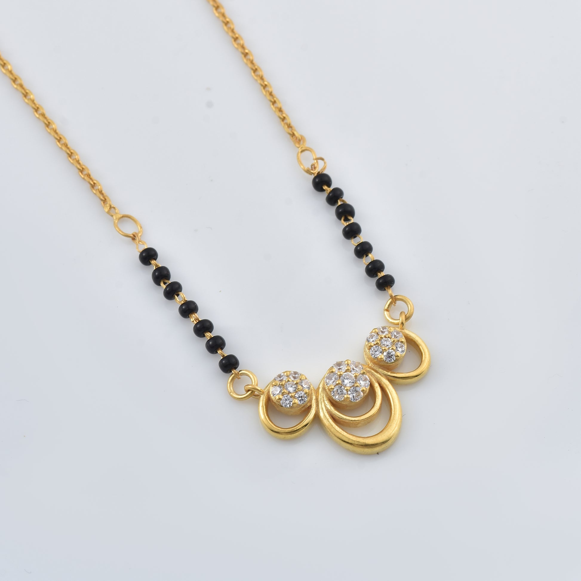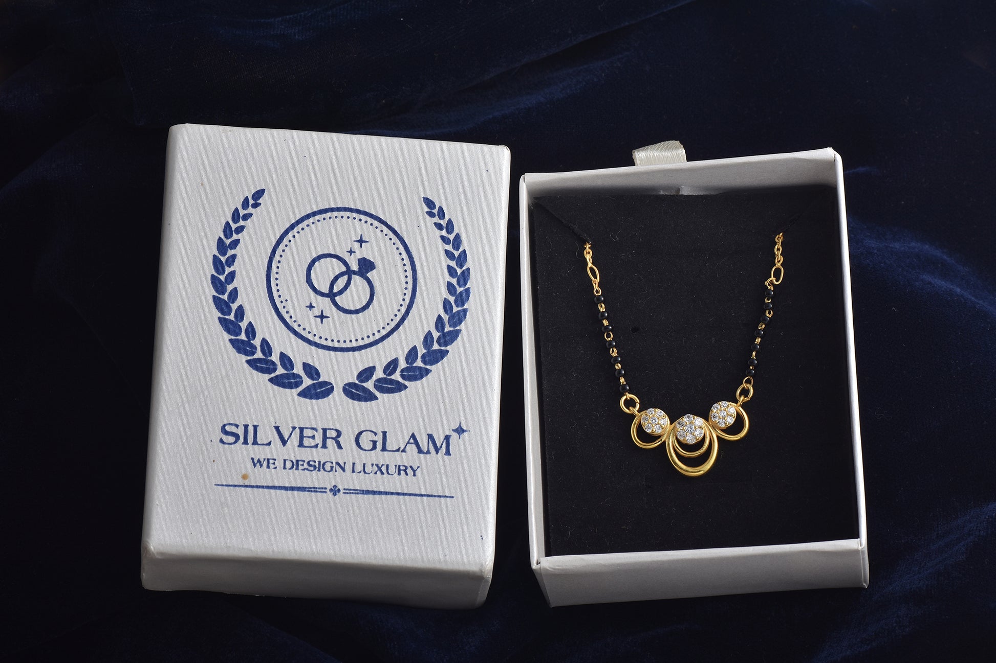 Expertly handcrafted in 925 pure silver with a radiant Yellow Gold rhodium finish, this mangalsutra features classic black beads and a sleek, minimalist pendant—perfect for adding everyday elegance to your look.