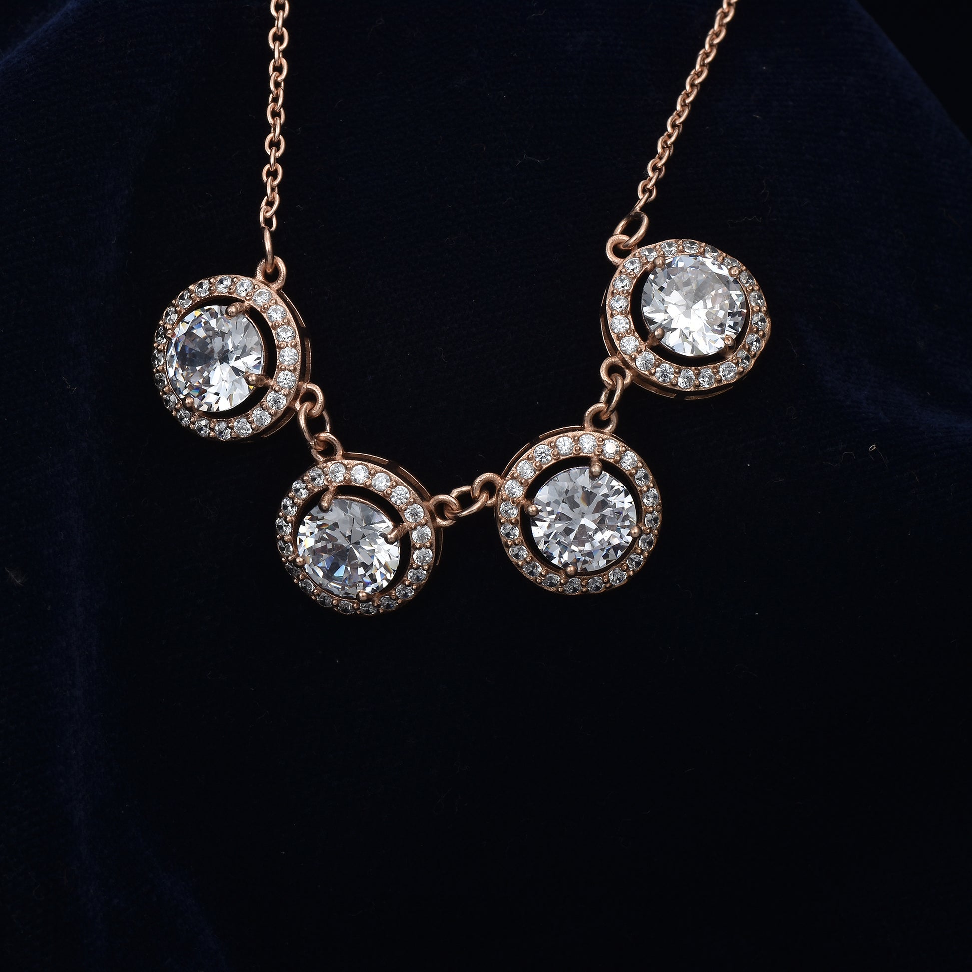 Crafted in 925 pure silver with a luxurious rose gold finish, this necklace radiates timeless charm and modern elegance. Its soft blush tones add a graceful glow, perfect for both everyday wear and special occasions. Lightweight, skin-friendly, and designed with precision, it’s more than just jewelry—it’s a statement of refined beauty.